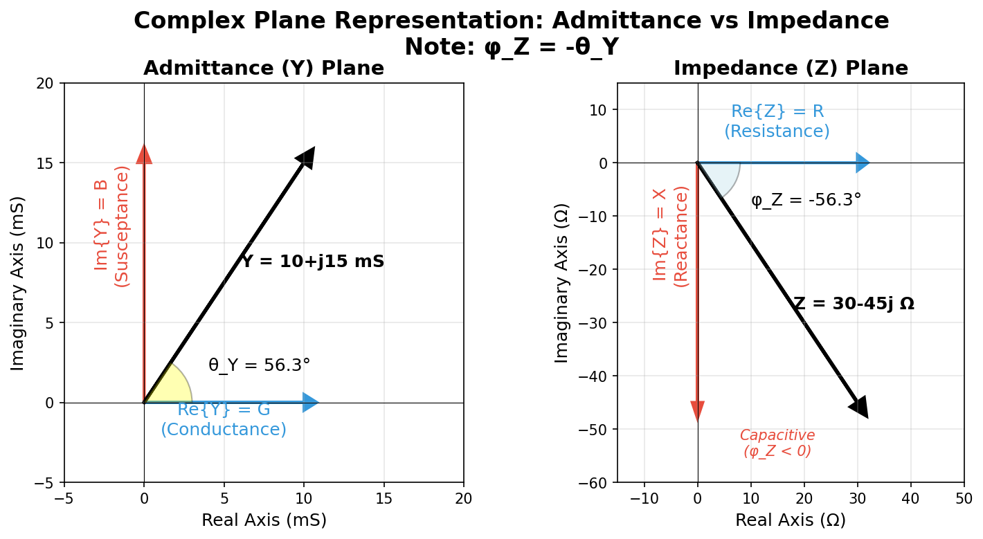 • Connection: Angles are opposite (φ_Z = -φ_Y), magnitudes invert (|Z| = 1/|Y|)